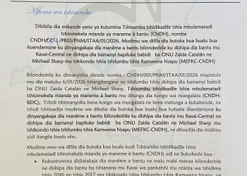 - Dibikila dia mikanda yenu ya kutumina Tshisumbu tshidikadile tshia mbulamatadi tshiomekela mianda ya maneme à bantu (CNDH), nomba CNDH/004/PRES/PNM/STAA/01/2026. Mudimu wa difila dia butoka bua bualu bua kuandamune ku dinyangakaja dia manême a bantu bilondeshile ku dishipa dia bantu mu Kasai-Central ne dishipa dia bamanyi bapiluke l babidi ba ONU Zaida Catalán ne Michael Sharp mu tshikondo tshia tshilumbu tshia Kamwena Nsapu (MEFKC-CNDH)